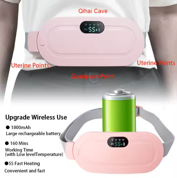 Experience instant relief from cramps with our USB rechargeable, cordless heating pad designed for comfort on the go.